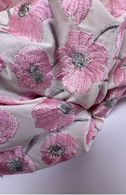 - Цвет — на белом фоне вышивка из нежно розовых цветов