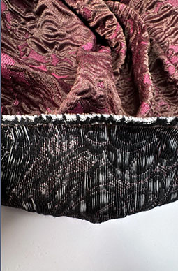 Ткань Жаккард купить — цена 9,8 рублей за жаккардовую ткань Матлассе, необыкновенно красивую, с выпуклым узором. Жаккардовая ткань с хлопком и шелком — Жаккард Метлассе итальянского производства можно купить в интернет магазине Luxury-Couture. Эта Ткань Жаккард из нежно розового хлопка с шелком и выпуклым узором бордового, коричневого цвета станет вашим восхитительным и любимым костюмом или курткой. В интернет магазине Luxury-Couture можно купить не только красивую ткань из натурального шелка и хлопка Жаккард Матлассе Италия, но и ажурное итальянское свадебное кружево